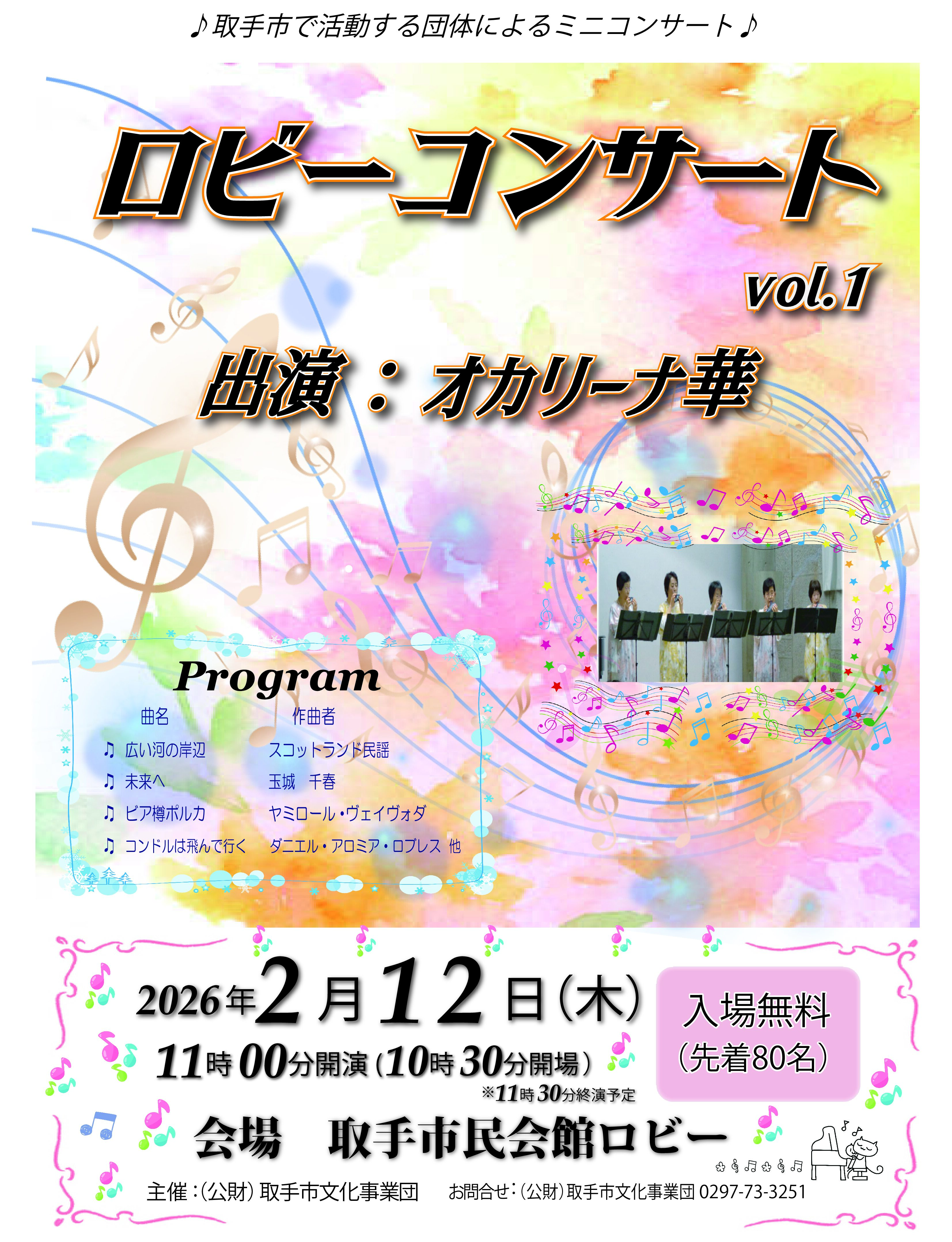 取手市民会館ロビーコンサート出演者募集!