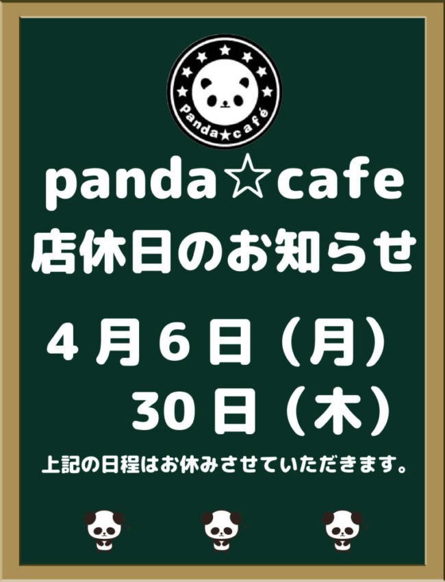 パンダ☆カフェ店休日のお知らせ